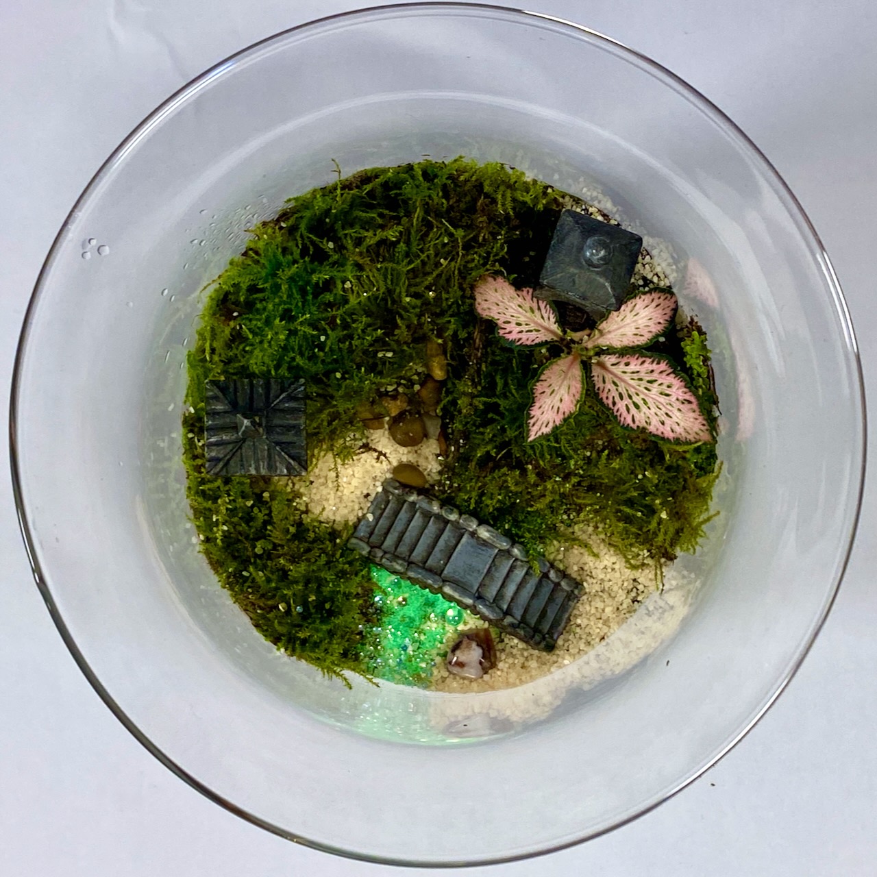 Perfect for your desk, bookshelf, or any nook that needs a touch of enchantment ✨ this terrarium is a low-maintenance friend that brings a bit of nature’s magic indoors. Just a little spritz 💦 and a lot of love ❤️ will keep this tiny world thriving. Let your imagination run wild and get ready to be captivated by the charm of this miniature mossy wonderland! 🌿💖🪄
